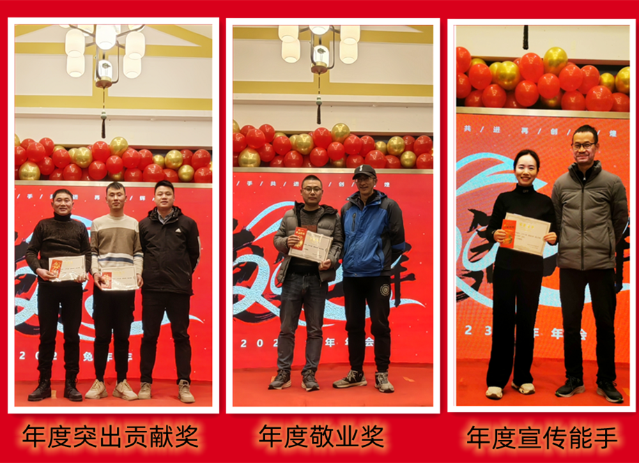 趙總致辭后,公司為2022年度表現(xiàn)優(yōu)異的團(tuán)隊和個人進(jìn)行了表彰。人才是公司生存和發(fā)展之本。公司發(fā)展的每一步都離不開每個協(xié)普人的努力和付出。本年度公司共評選出三名優(yōu)秀員工——陶?;?、楊剛、徐金鳳,“2022年度突出貢獻(xiàn)獎”——張傳東、桂佳俊,“2022年度敬業(yè)獎”——陳阿龍,“年度宣傳小能手”——宋玉秋;“協(xié)普年度出差達(dá)人”——胡金龍,“年度最具成長力員工”——王傳銀,“5S進(jìn)步團(tuán)體”——技術(shù)部、車間鉚焊班,“質(zhì)量進(jìn)步團(tuán)體”——質(zhì)量部,“協(xié)普奉獻(xiàn)獎”——劉庭玉。